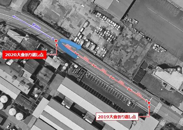 「第2折り返し」を100m(往復200m)短くし、その分「第1折り返し」を伸ばします。
